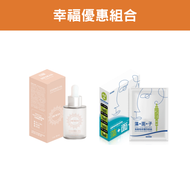 每組內含禾玫蕬賦活修復精華油、藻面子海葡萄修護面膜各1盒